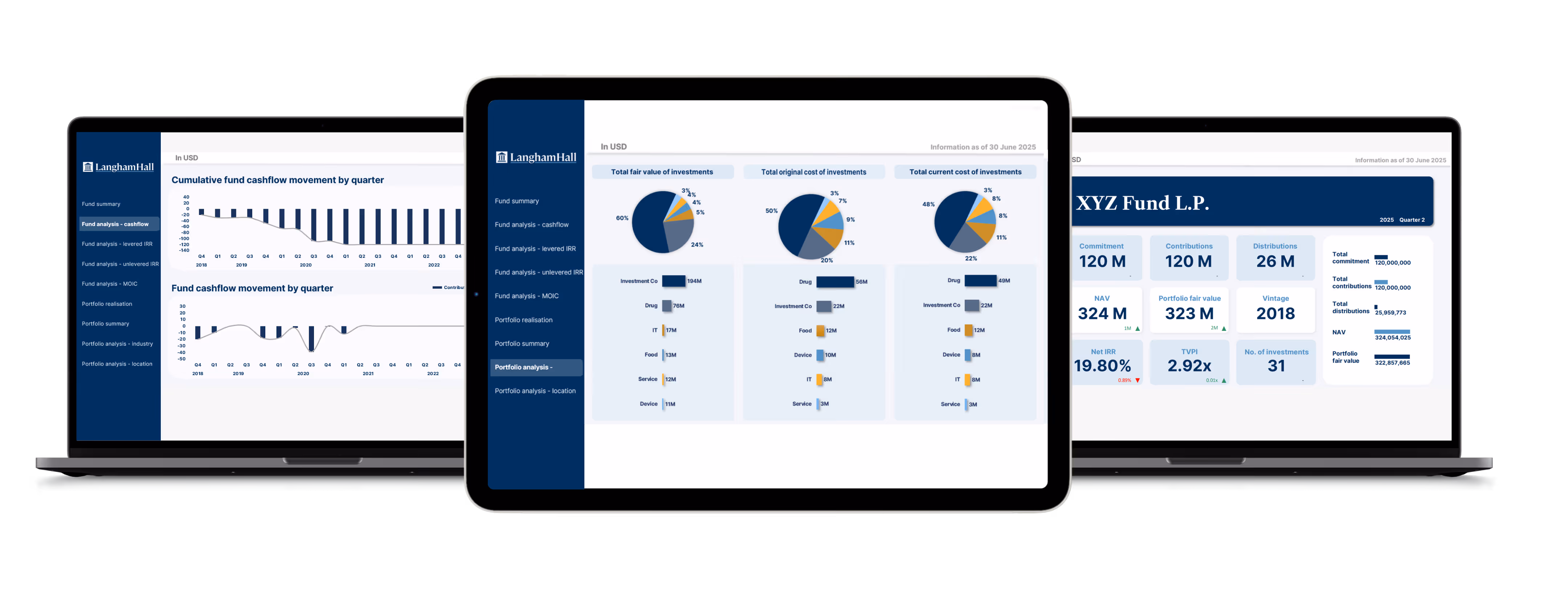 Wolfram connects seamlessly with Langham Hall’s core fund services. Data we maintain — including management accounts, investment-level performance and LP-by-LP capital — is structured into a single, centralised platform, ready for real-time reporting.